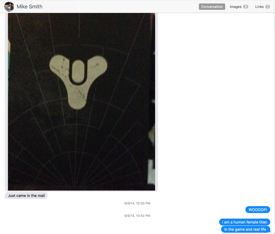 When the game finally launched a year later, in September 2014, we were lighting up each other’s phones. “What subclass did you choose?” “How far are you in the story?” “What’s your favorite gun so far?” In contrast to previous years where we’d text each other every so often, now we were in constant communication.