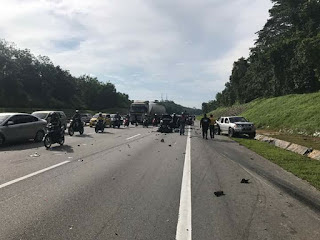 Kemalangan itu turut membabitkan dua motosikal dan dua kereta, menyebabkan kesesakan sejauh hampir lima kilometer.
