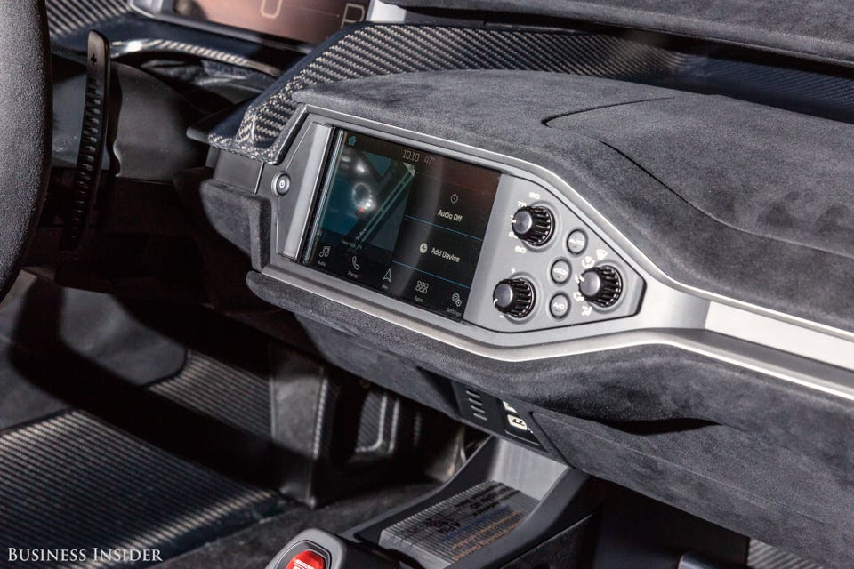 There’s Alcantara, carbon fiber, and leather everywhere in here. The GT road car and race car were developed at the same time, so the cockpit is snug.