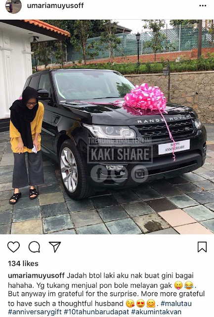 Menurut umariamuyusoff, kereta tersebut merupakan hadiah sempena ulangtahun kelahirannya yang sudah berlalu. Namun suami membuat keputusan untuk memberikan kejutan buatnya apabila memberitahu kereta itu miliknya. Rata-rata netizen turut tumpang gembira melihat keluarga bahagia ini.